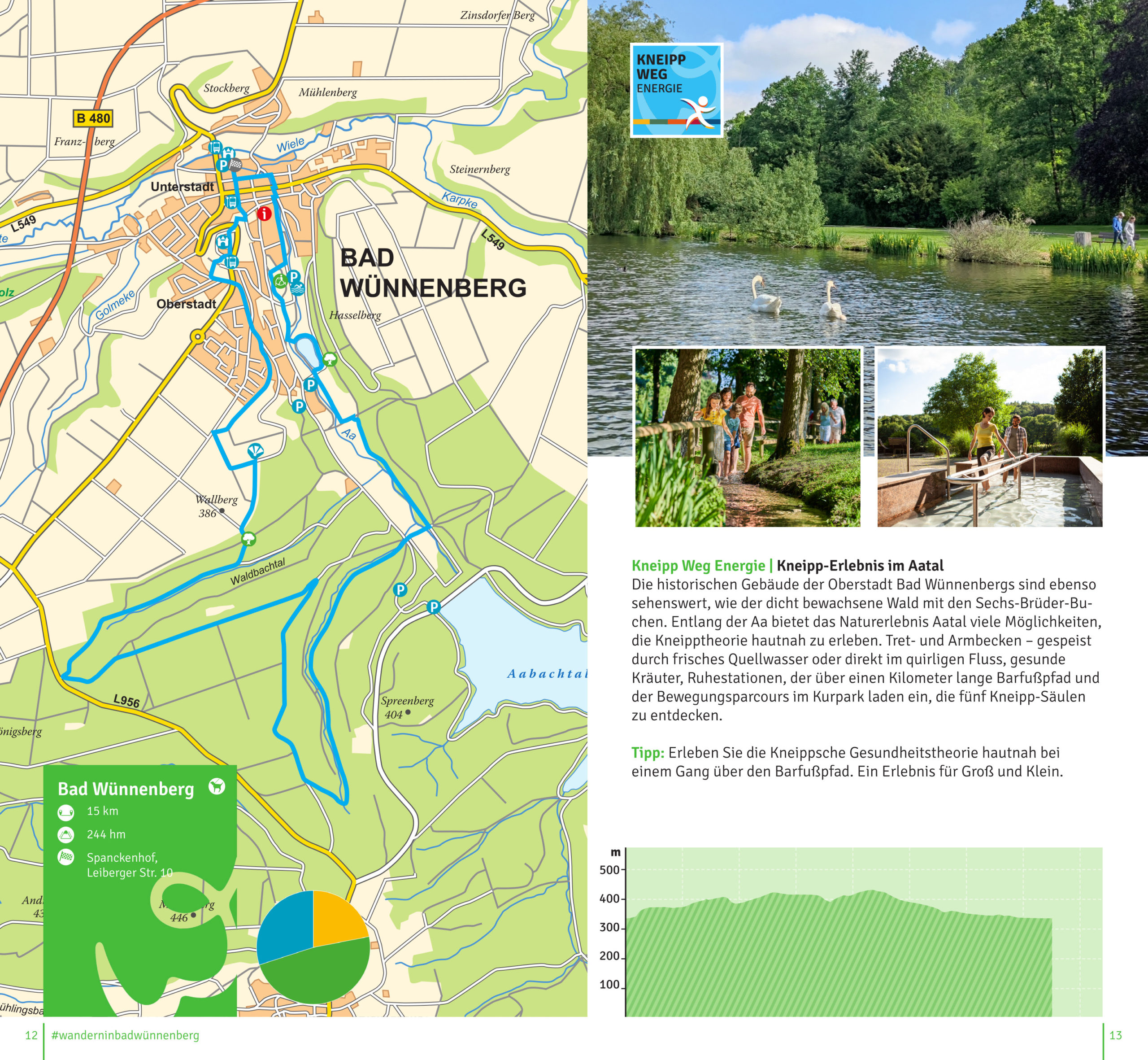 Die historischen Gebäude der Oberstadt Bad Wünnenbergs sind ebenso sehenswert, wie der dicht bewachsene Wald mit den Sechs-Brüder-Buchen. Entlang der Aa bietet das Naturerlebnis Aatal viele Möglichkeiten die Kneipptheorie hautnah zu erleben. Tret- und Armbecken – gespeist durch frisches Quellwasser oder direkt im quirligen Fluss, gesunde Kräuter, Ruhestationen, der über einen Kilometer lange Barfußpfad und der Bewegungsparcours im Kurpark laden ein, die fünf Kneipp-Säulen zu entdecken.